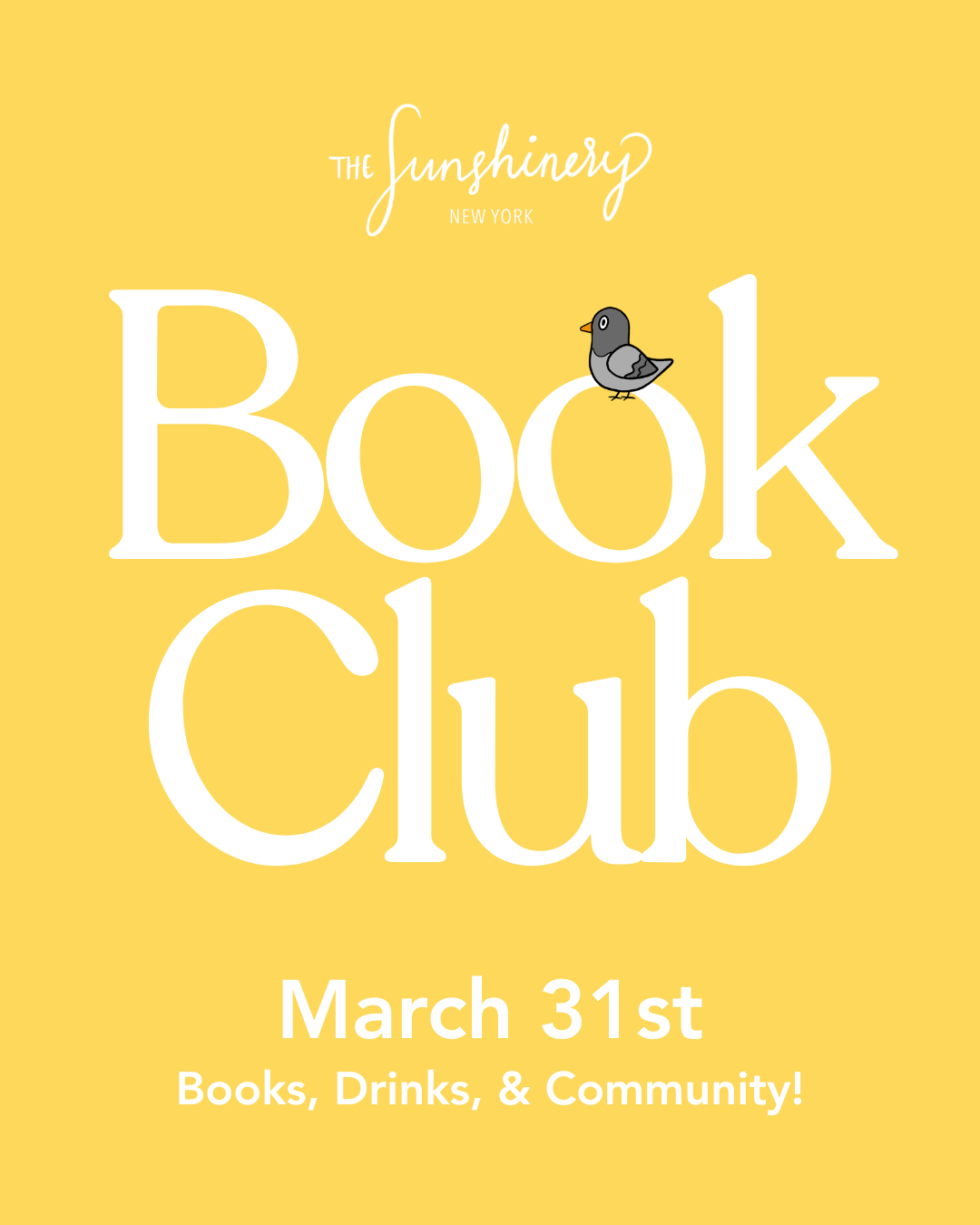 Join us for our monthly meeting of The Sunshinery Book Club! At each book club, we'll provide drinks and guided conversations on the book of the month. With a maximum of 20 people, and small group breakouts, we find this event to be the perfect oasis from a New York winter.
